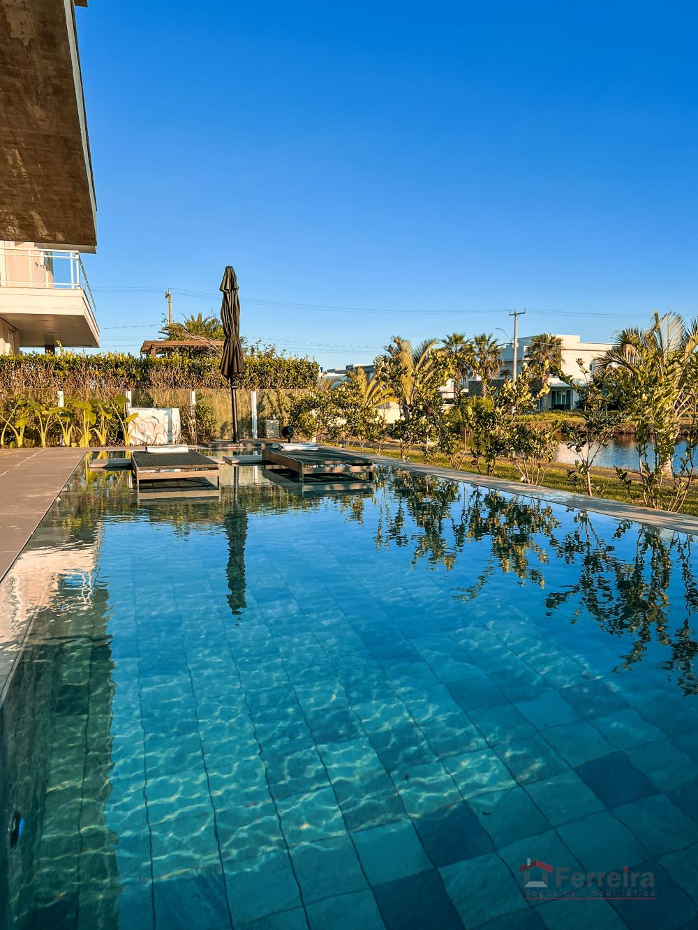 Piscina elegante com área de lazer exclusiva