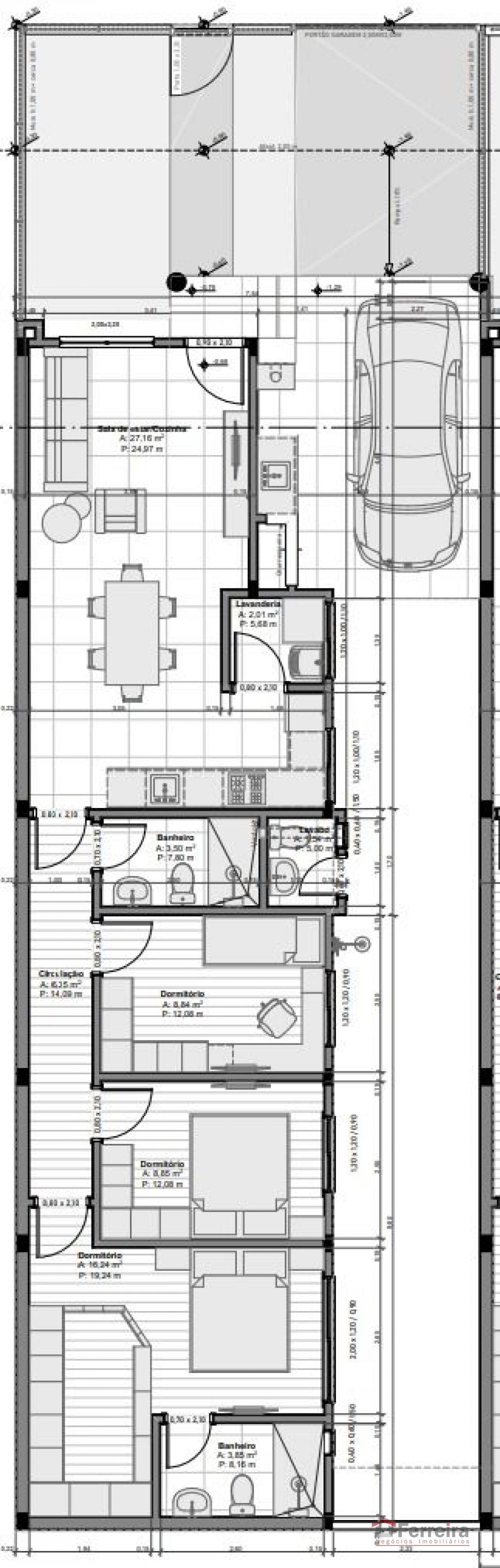 Com 111 m² de área construída, o imóvel oferece uma planta inteligente e fluida, onde a sala e a cozinha integradas com pé-direito duplo criam uma sensação única de amplitude e bem-estar, perfeita para viver e receber.